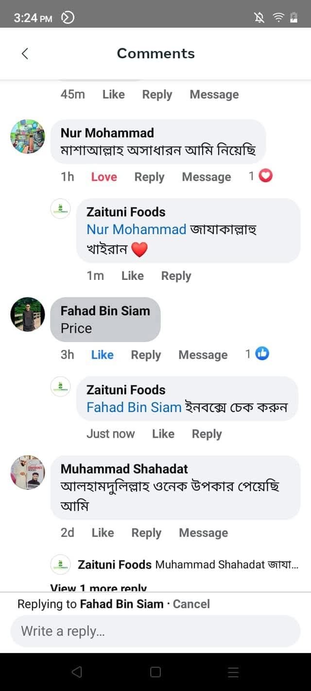 আমাদের পণ্যসমূহ পাওয়া এবং ব্যবহারেরর পর আমাদের কাস্টমারগণ আমাদের কাছে রিভিউ প্রদান করেন । নিচে সেই রিভিউগুলো আপনারা পণ্য কিনার পূর্বে দেখে যাচাই বাছাই করতে পারেন । যে কোনো রিভিউ বড় সাইজে দেখার জন্য ঐ ছবির উপর ক্লিক করুন তাহলে বড় করে দেখা যাবে ।